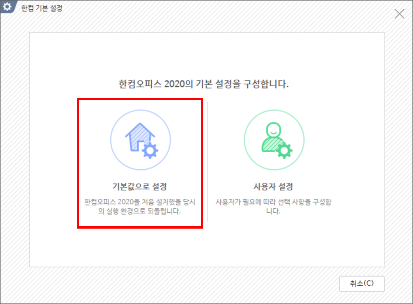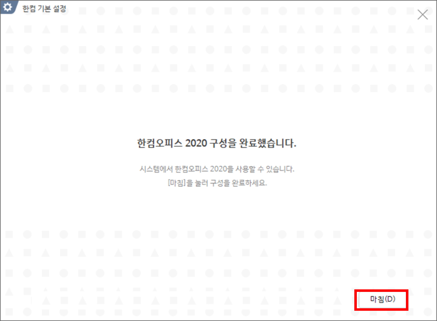 5. 한글 2020 설치 후 설정 버튼을 클릭합니다.