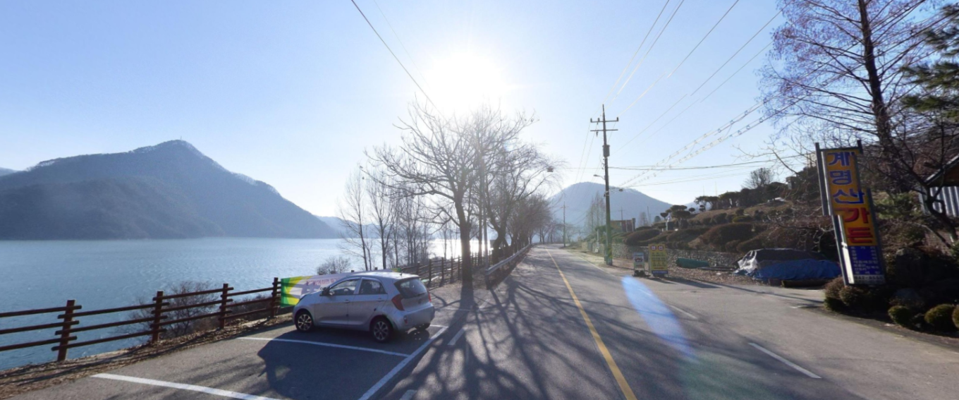 - 호수 주변 도로는 굽이가 많으므로 안전운전에 유의해야 합니다.